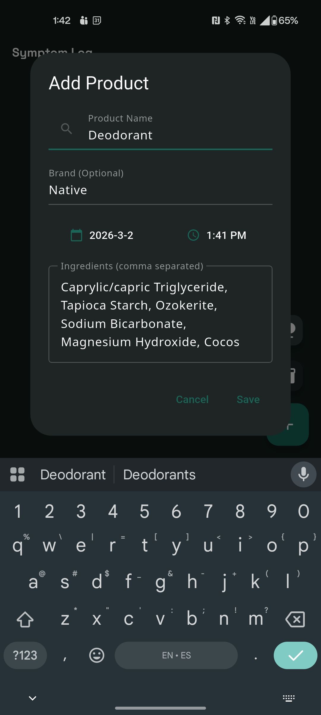 The app needed to handle everything from a bag of chips to a new laundry detergent or a change in seasonal pollen. This is a huge undertaking from a UI standpoint to ensure that it still feels simple to use and not overwhelming. I don't want to have to switch between 10 different modes to log my life, and I'm betting neither does anyone else.